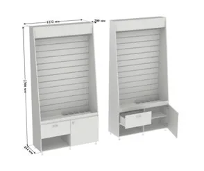 ГАССТЕНД цвет серый, экономпанель с пластиковыми вставками, 1 дверь и выдвижной ящик ГС02-01 (434х2 366х1 232; ЛДСП) ГАССТЕНД комплектуется комплектом крючков, карманом А4 и фризом по желанию заказчика.С этим товаром также покупают