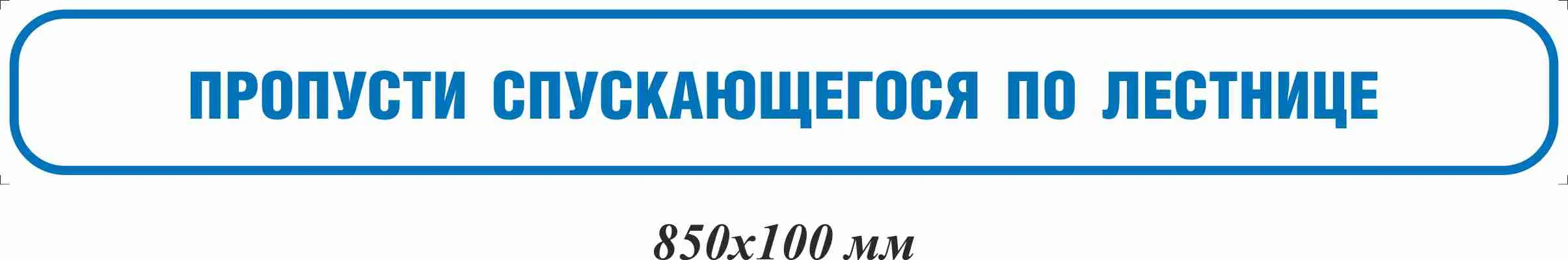 Наклейка информационная на ступени Пропусти спускающегося по лестнице 850х100 мм, материал пленка ПВХ самоклеящаяся, форма прямоугольная края закругленные, цвет белый/синий/Арт. IT-850x100-PS1
