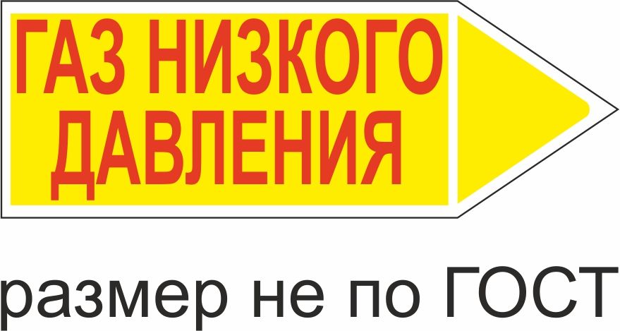 Маркер самоклеящийся Газ низкого давление 26х74 мм, фон желтый, буквы красные, налево