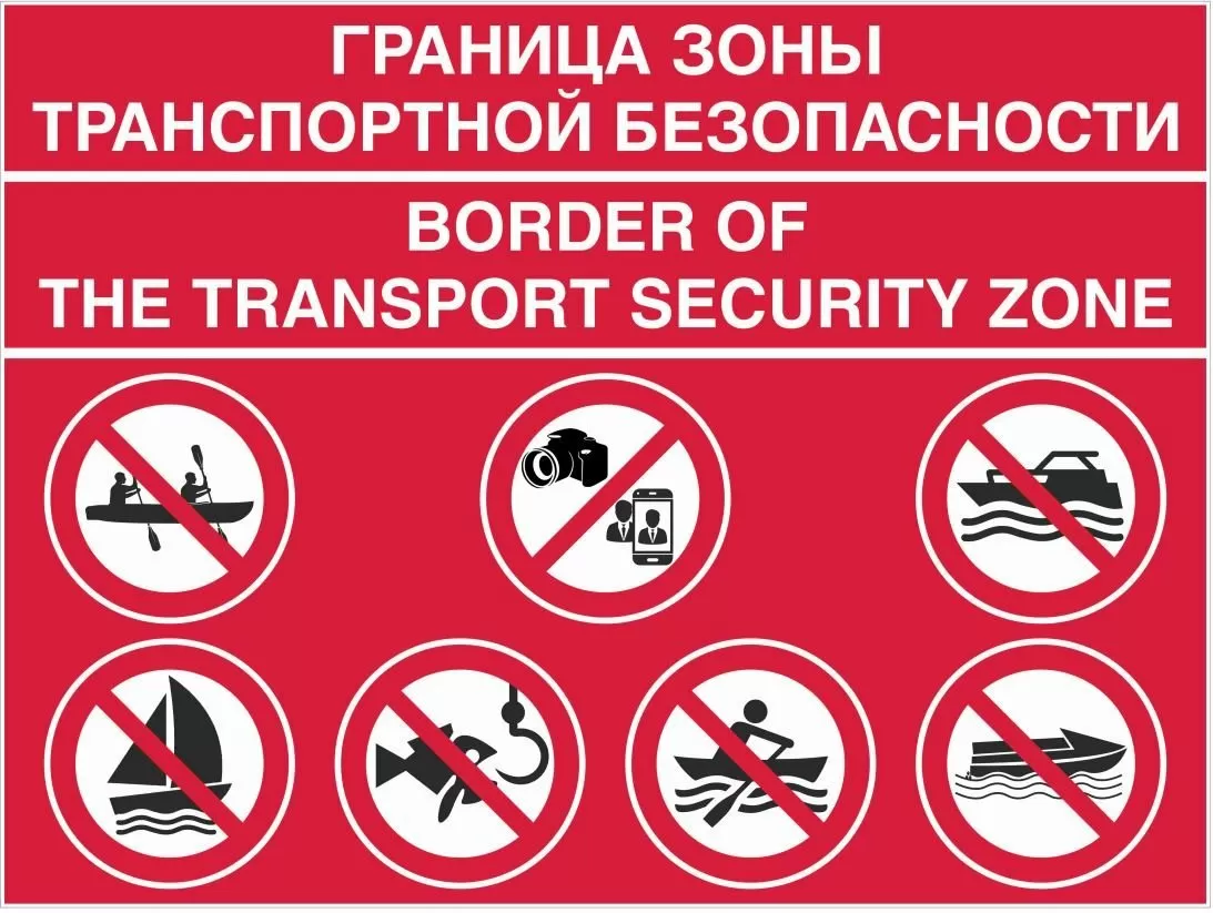Граница зоны транспортной безопасности для водных объектов с дублированием на английском языке