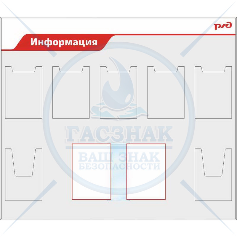 Стенд. КСОТ-П с карманом для канцелярии 100х216 мм объемный (550х1100; Пластик ПВХ 4 мм, алюминиевый профиль; ), Карман А4 горизонтальный плоский-2шт,