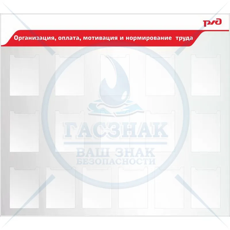 Стенд Информация РЖД, 2 кармана А4 пл., 2 кармана А4 объемн., 2 перекидныхй системы на 6 ячеек (1400х1200; Пластик ПВХ 4 мм, алюминиевый профиль; )