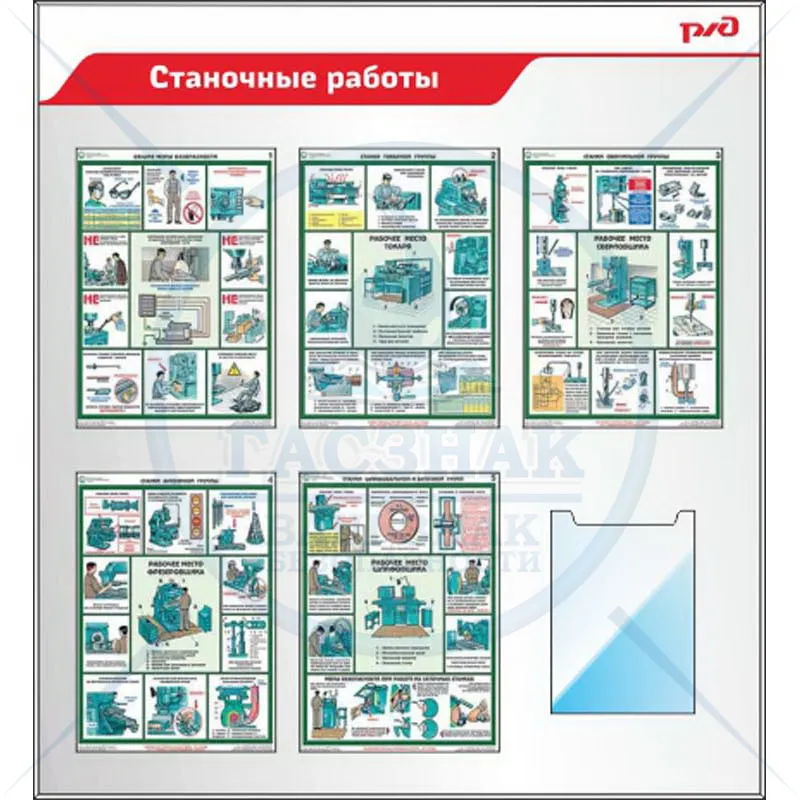 Стенд информационный пластиковый Уголок охраны труда, профиль ПВХ красный, 820х820, 6 карманов А4