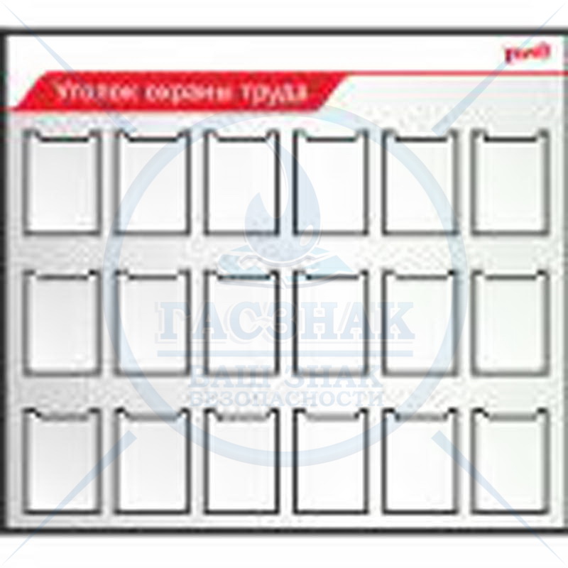 Стенд Уголок охраны труда, 1 горизонтальный карман А3, 4 объемных кармана А4, 5 плоских карманов А4 (1650х950; Пластик ПВХ 4 мм, пластиковый профиль; )