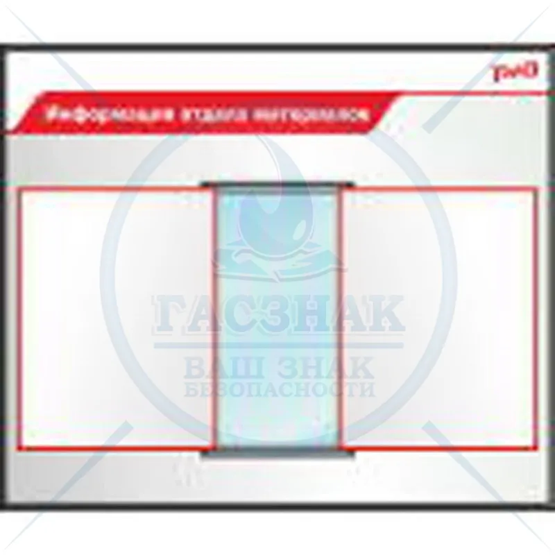 Стенд Промышленная безопасность РЖД, 8 объемных кармана А4 вертик. (1150х1100; Пластик ПВХ 4 мм, алюминиевый профиль; )
