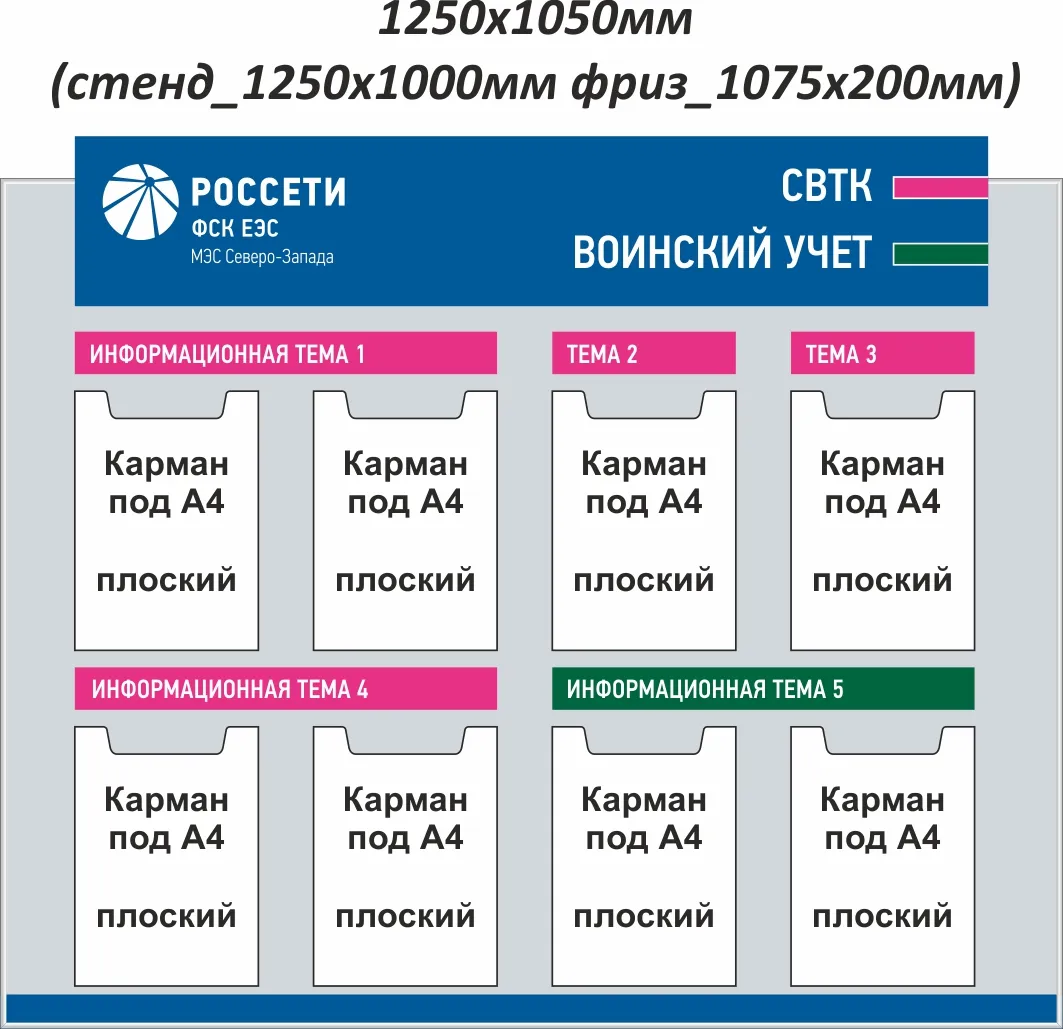 Стенд 1250x1050, Металлокомпозит 3 мм, ал. профиль, накладной фриз 1075х200мм