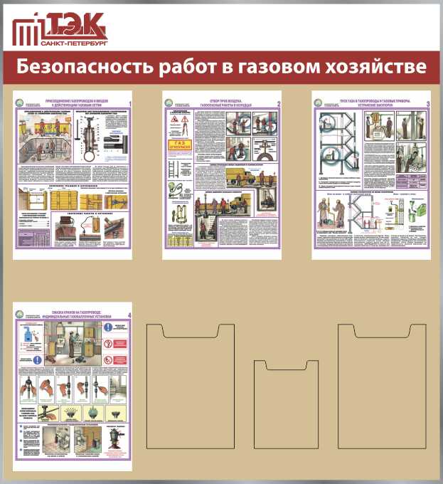 Стенд ТЭК Безопасность работ в газовом хозяйстве 4 плаката А3, 2кармана А4, 1карман А5 (1100х1200; Пластик ПВХ 4 мм, пластиковый профиль; Пластиковый белый)