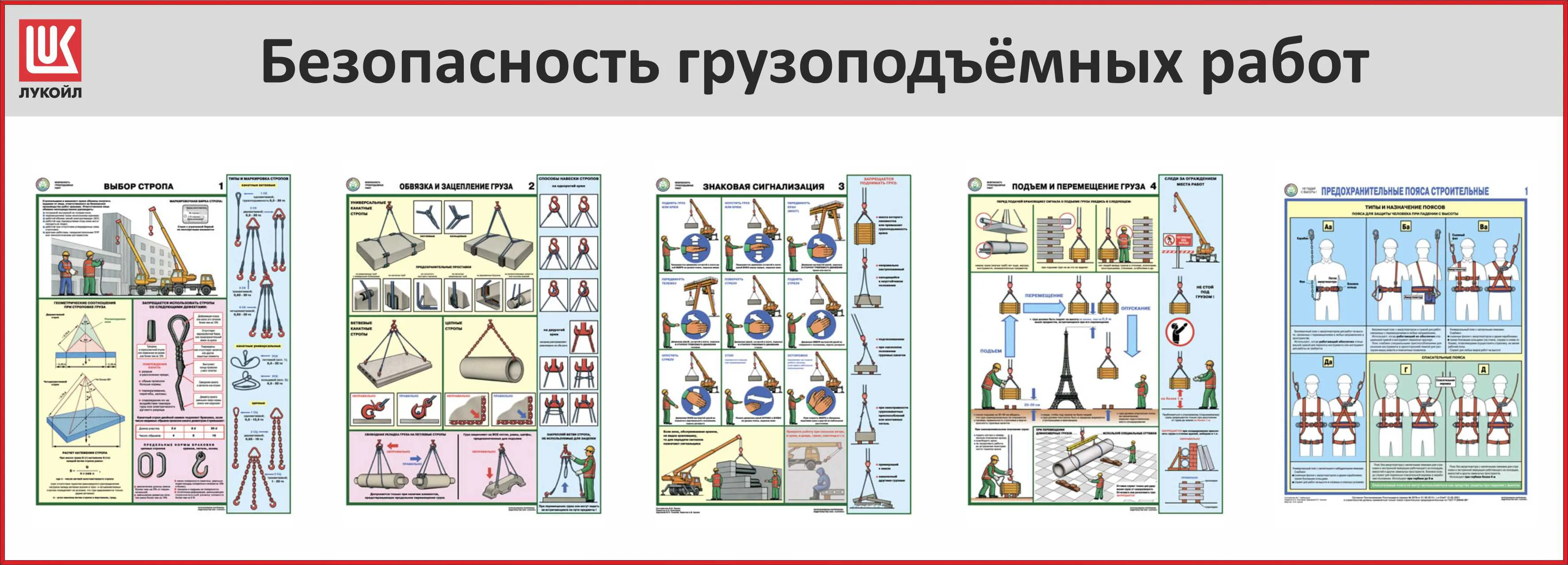 Стенд Безопасность грузоподъемных работ, 5 плакатов А2, Логотип (2500х900; Пластик ПВХ 4 мм, алюминиевый профиль; Алюминиевый профиль)