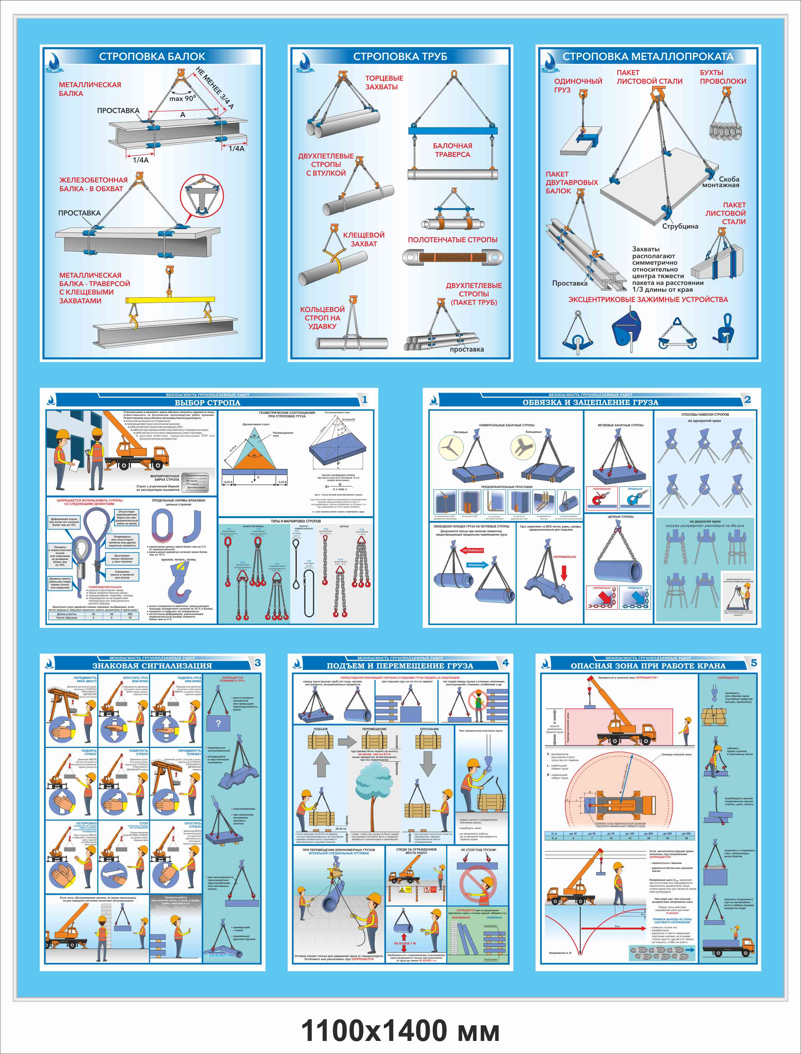 Универсальный стенд (без логотипа) "Строповка и складирование грузов" с 8 плакатами ГАСЗНАК