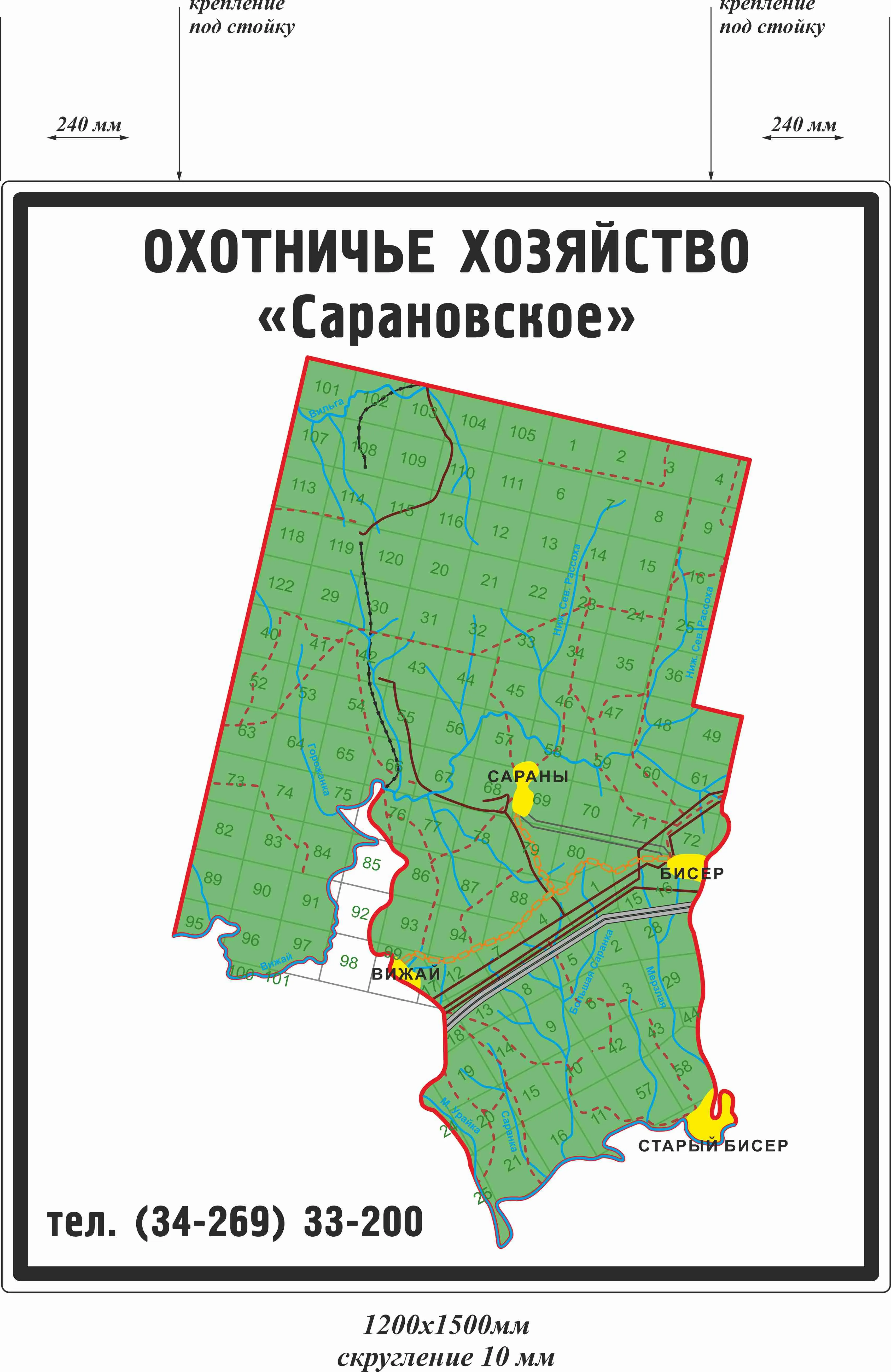 Охотничье хозяйство. Схема — уличный указатель, направленный на поддержку туристической инфраструктуры в населенном пункте. Красиво оформленный стенд привлекает внимание и помогает лучше усвоить информацию.