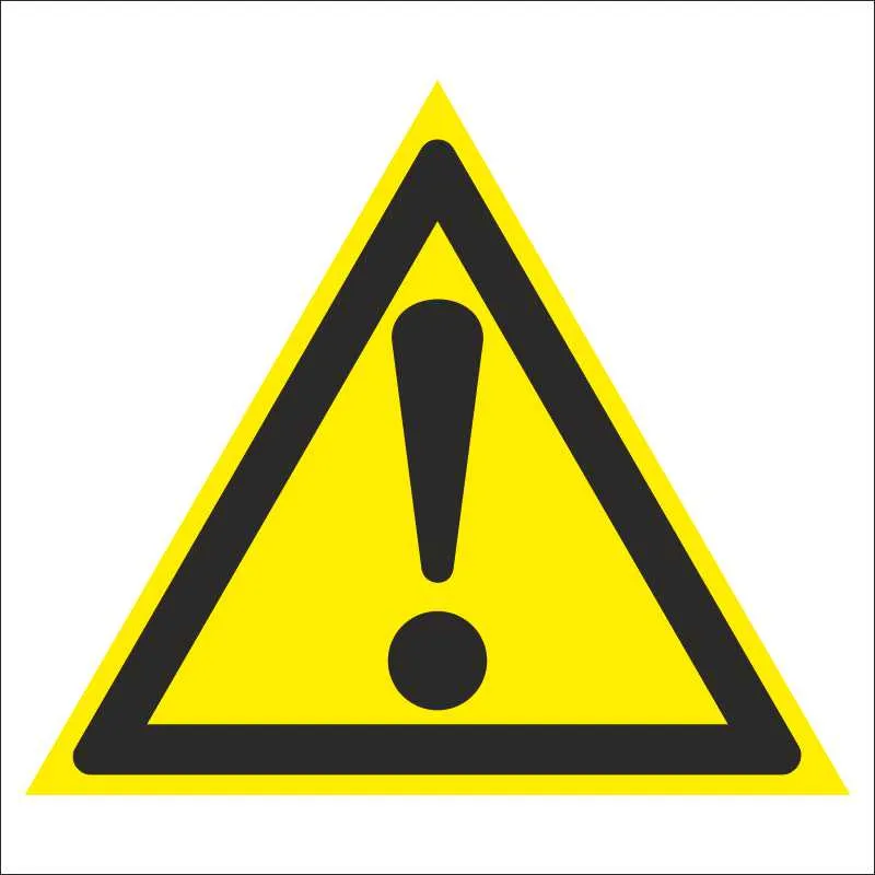 «Внимание. Опасность» — предупреждающий знак. Устанавливается для предупреждения в местах, где высока вероятность травм и несчастных случаев из-за опасных факторов, которые не имеют отдельного стандарта. Часто размещается вместе с поясняющей надписью.