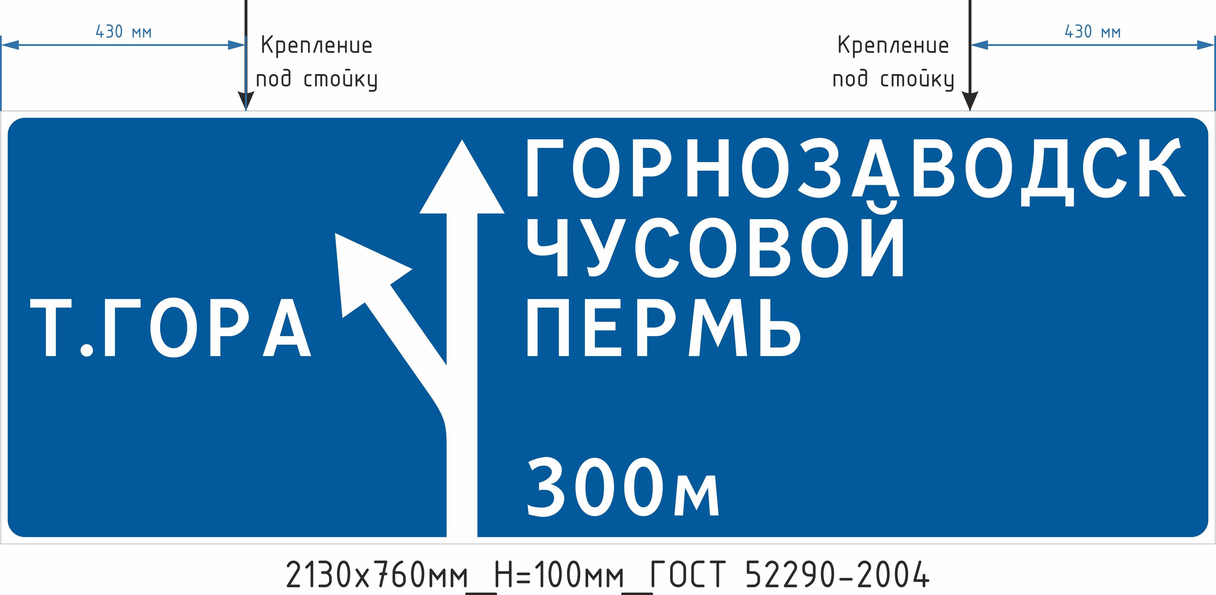 Знак индивидуального проектирования 6.9.1 "Т.Гора (левее) Горнозаводск, Чусовой, Пермь (прямо)"